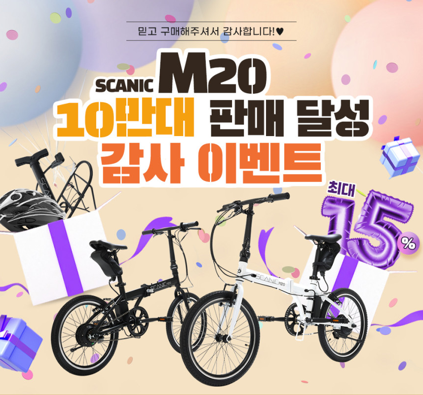 1. 스카닉 M20의 장점은 무엇보다 가성비죠. 최근에 10만대가 팔렸다고 감사이벤트 하는걸 봤는데 요즘 잘 나가는 퀄리 같은 경우 가장 저렴한 모델이 100만원에 가깝기 때문에 그 반값에 새 제품의 전기자전거를 살수 있다는 것이 저에게도 가장 큰 선택의 이유였어요~ 조립난이도도 굉장히 쉬워요!