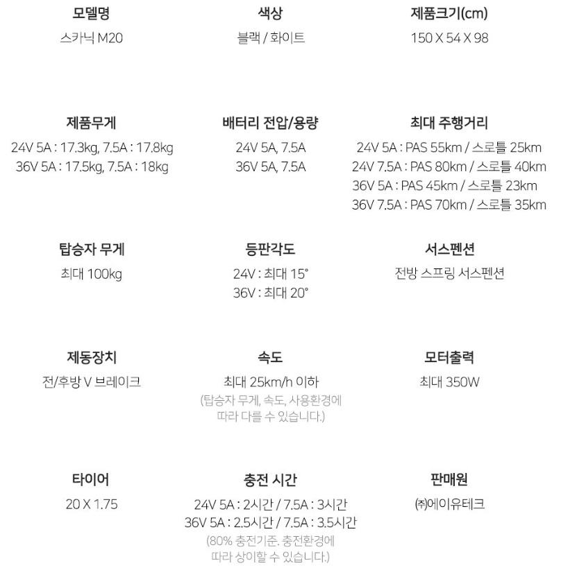 스카닉 M20은 판매도 잘되어서인지 파생상품도 많아요~ 가장 일반적인 스카닉 M20의 경우 모터의 출력에 따라 24V와 36V로 나뉘고 또 배터리 5Ah와 7.5Ah로 나뉩니다. 그외에도 M20 플러스와 M20 맥스도 있는데 이 녀석들은 가격대가 70만원이 넘어가는데 음 그 가격대라면 굳이 이 제품을 사야하는지 의문이 들기 때문에 다루지 않겠습니다.